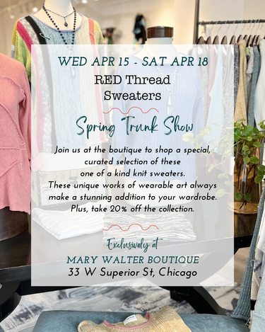 Mary Walter has been my “go to” shop ever since I discovered it several years ago. I live 200 miles away so most of my shopping is on line. Even from afar, Erin has made suggestions for my wardrobe (and body type) that have been spot on. Last December I was able to visit the shop in person and experience the personal customer service experience first hand. The on-line selections are only a fraction of what is available in-shop and of course the opportunity for real time styling was fantastic.