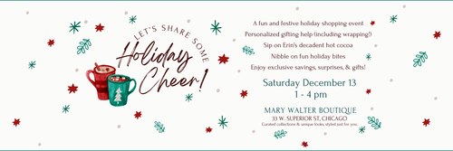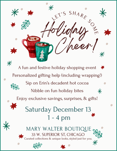 from 48 reviewsMary Walter has been my “go to” shop ever since I discovered it several years ago. I live 200 miles away so most of my shopping is on line. Even from afar, Erin has made suggestions for my wardrobe (and body type) that have been spot on. Last December I was able to visit the shop in person and experience the personal customer service experience first hand. The on-line selections are only a fraction of what is available in-shop and of course the opportunity for real time styling was fantastic.