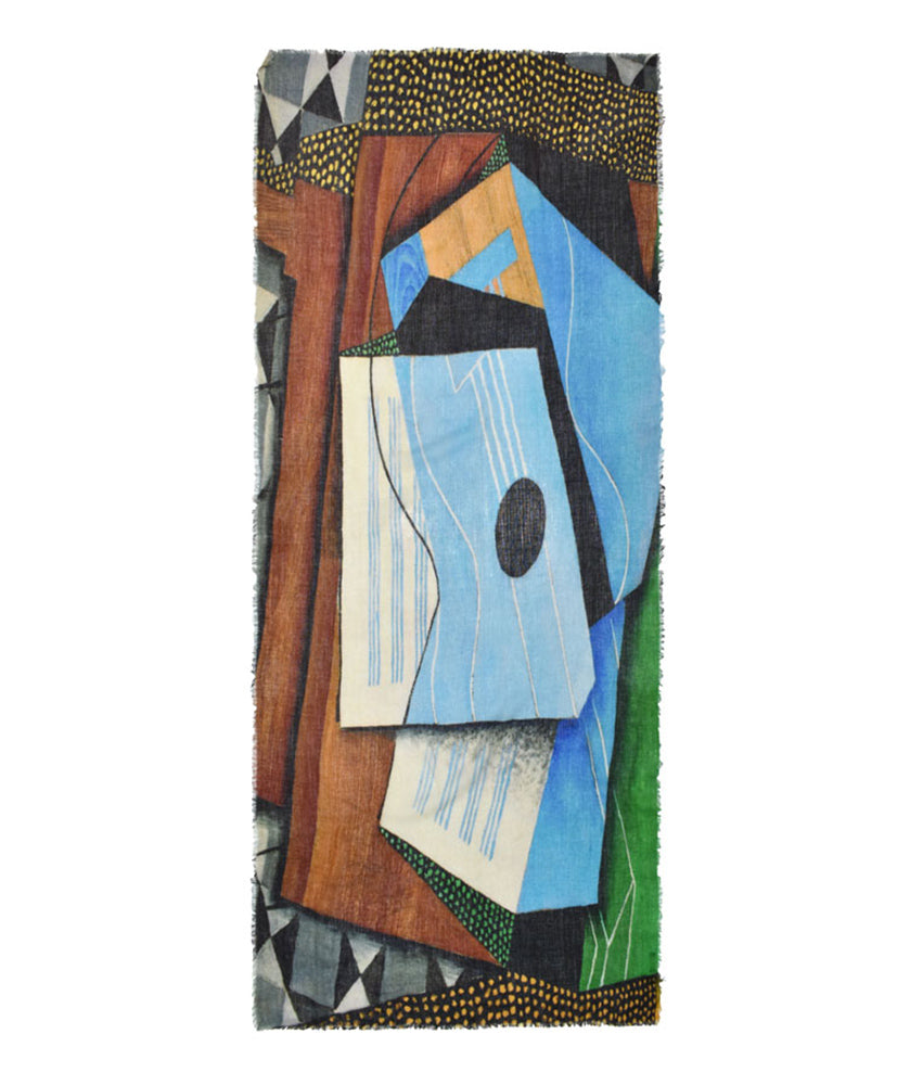 Featuring a sharp geometric design in denim-friendly shades of blue and brown, this scarf is an ideal accent for both casual and curated wardrobes. The four-sided fringe adds a tactile finish and casual movement