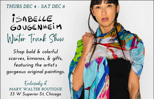 Peruse the newest collection of breathtaking wearable art from multifaceted artist and designer Isabelle Gougenheim! Each of her stunning scarves, kimonos, jackets, original multimedia, and gifts are truly special.