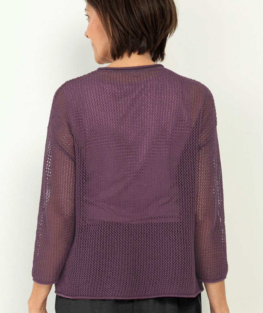 Love this gorgeous layered sweater for spring. The soft crochet sweater is light and airy, in a deep mulberry color. It's layered perfectly over a soft sleeveless top in a light rose color that adds a touch of dimension. The subtle floral print adds a bit more fun to the look. Wear it with white, khaki, or denim... you're going to love this one.