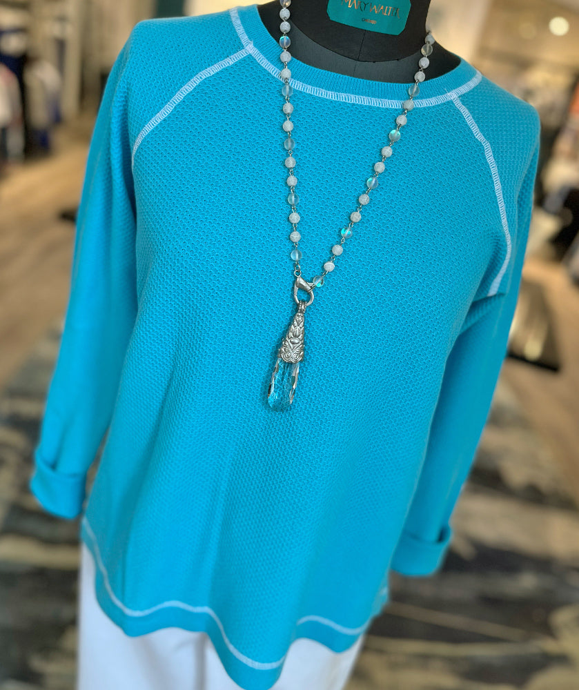 À propos: Elliott Lauren Waffle Raglan Pullover / Turquoise / XS