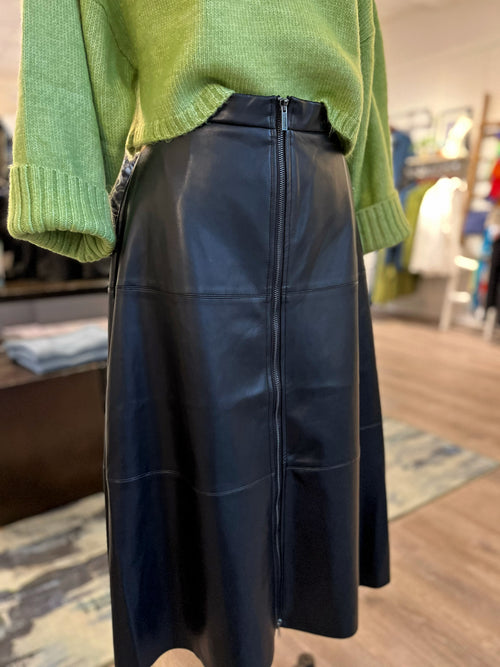 Winter calls for fun events, and you want to shine bright, but stay warm. Leave it to rich layers in cozy season-ready fabrics, like this ultra soft vegan leather skirt from Elliott Lauren.... it's going to look great over your favorite black boots and a pair of warm tights.