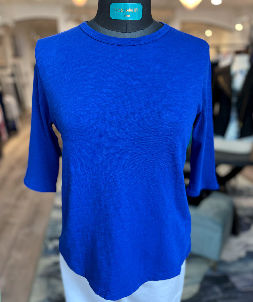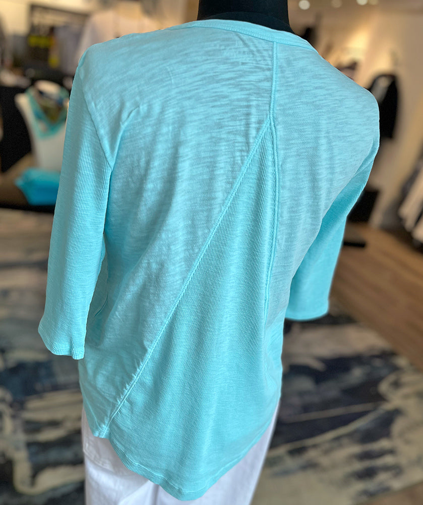 We love Elliott Lauren's soft, light, and oh-so-fun enzyme wash cotton tees for spring. This season, the soft slubbed jersey knit is paired with a supple fine rib knit for a fresh take on a seasonal basic. With a crew neckline, a shirttail hemline and a hi-lo cut with a touch of extra coverage in the back, plus that rib knit featured in the 3/4 sleeves and the fun back gusset for ease and style. Find your favorite color... or two, or three!